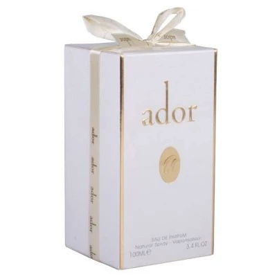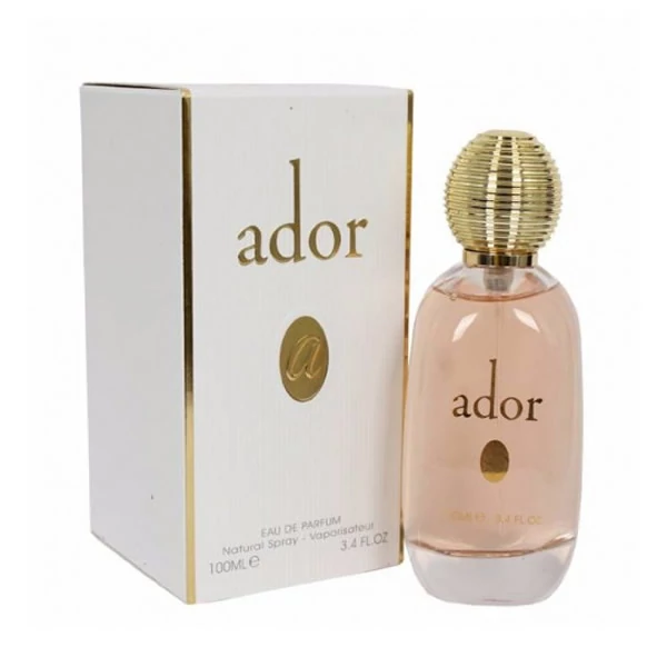 عطر و ادکلن زنانه فراگرنس ورد ادور ای ادوپرفیوم Fragrance World Ador EDP For Women عطری از برند اماراتی فرانگرس ورد است و از محصولات با کیفیت و پر طرفدار این برند به شمار می آید. ادکلن زنانه فراگرنس ورد حجمی برابر 100 میل دارد و از غلظتی از نوع ادوپرفیوم برخوردار است. عطر زنانه فراگرنس ورد رایحه ای شیرین و گرم دارد و مناسب استفاده خانم های شیک پوش و جذاب است.