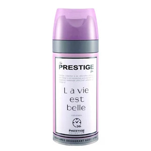 برند آرایشی پرستیژ یک برند آمریکایی و از برندهای قدیمی در صنعت آرایش محسوب میشود. محصولات این برند دارای رنگهای بسیار قوی وکیفیتی بسیار بالا هستند. بخاطر قیمت مناسب این برند تمام بانوان میتوانند از محصولات پرستیژ بهرهمند شوند. محصولات این برند در کارخانۀ فلوریدا تولید میشودکه محصولات استودیو، میکاپ، مک و استی لادر هم در حال تولید است. اسپری دئودورانت زنانه پرستيژ مدل lancome LA Via Este Belle حجم 150 ميل یکی از محصولات این برند است.